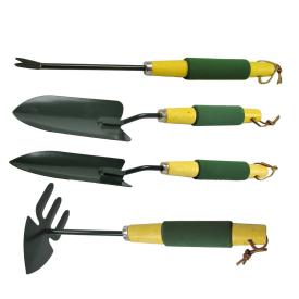 Questo set di attrezzi da giardino è stato pensato per la massima funzionalità . Le parti metalliche sono robuste e resistenti alla fatica. I manici sono il vero punto di forza: realizzati in legno e rivestiti con una speciale impugnatura "soft grip" di colore verde, offrono un comfort eccezionale, una presa antiscivolo e riducono l'affaticamento delle mani durante l'uso prolungato. Il set include una paletta grande, una paletta piccola (perfetta per i vasi), un rastrello a tre denti per smuovere il terreno e un vanghetto per scavare piccole buche.