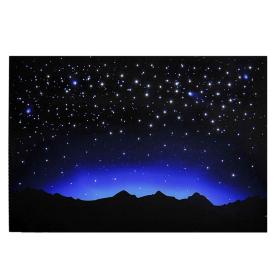 Il pannello cielo e montagne stelle luminose a fibra ottica, dimensioni 60x2x40 centimetri, è un elemento mozzafiato per il tuo presepe fai-da-te. Marchiato Rossi Rosa, garantisce qualità e realismo.