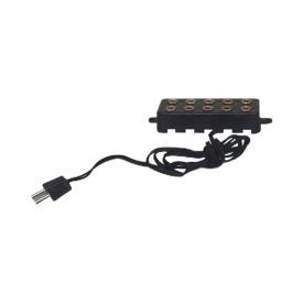 Realizzata in PVC nero resistente, questa multipresa per modellismo è discreta e facile da nascondere all'interno della scenografia. Le sue dimensioni ridotte (circa 4,5 cm di lunghezza) la rendono ideale per presepi dove lo spazio per i componenti tecnici è limitato. È una soluzione pratica per organizzare i collegamenti elettrici ed evitare grovigli di cavi, specialmente quando si utilizzano più accessori per presepe a 3,5V alimentati da un'unica fonte (come un trasformatore o un porta batterie compatibile).