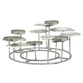 Illumina le tue serate con un'eleganza scultorea e scintillante grazie a questo magnifico centrotavola portacandele di Mauro Ferretti. Realizzato in metallo verniciato argento lucido, questo pezzo da 37,5x33,5x15 cm è una vera e propria composizione floreale stilizzata, con fiori di varia forma e misura che si sovrappongono. Dotato di 5 portacandele rotondi, è la scelta ideale per chi cerca una decorazione per la tavola che sia un'opera d'arte.