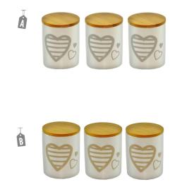 Questo set di barattoli è un capolavoro di funzionalità . La ceramica è un materiale eccellente per la conservazione, poiché è igienica e non assorbe odori. Il coperchio in legno è dotato di una guarnizione in silicone che garantisce una chiusura perfettamente ermetica, fondamentale per mantenere lo zucchero asciutto e preservare l'aroma del caffè. Con dimensioni di Ø8,6xH11 cm, sono compatti ma capienti. Il set è disponibile in due varianti di colore (cuori grigi o cuori beige) per adattarsi al meglio al tuo stile.