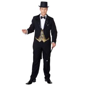 Vesti l'eleganza senza tempo con la nostra Giacca Frac Nera da uomo, un capo di abbigliamento scenico fondamentale della nostra selezione carnevale costumi adulti. Questa giacca, con il suo iconico taglio con le code, è l'essenza della formalità e dello stile da palcoscenico. Perché un mago o un direttore d'orchestra dovrebbero essere senza il loro frac? Perfetta per un costume da mago, un presentatore del circo, un direttore d'orchestra, un vampiro elegante o un look da sposo dell'800, questa giacca è l'ideale per trasformarsi in un vero gentiluomo dello spettacolo.
