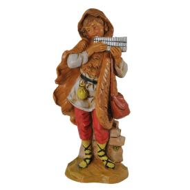 Il pastore è raffigurato con la sua armonica in mano, pronto a suonare una melodia festosa, rappresentando la musica e il divertimento nell'ambientazione natalizia. I dettagli accurati, dall'espressione del musicante alla foggia dello strumento, e la finitura realistica ottenuta tramite la pittura eseguita rigorosamente a mano, lo rendono un elemento ideale per aggiungere profonditàe vivacitàalla vostra scena del presepe.