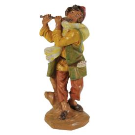 Il pastore è raffigurato con il suo flauto in mano, in un atteggiamento che suggerisce la musica e la contemplazione nell'ambientazione natalizia. I dettagli accurati, dall'espressione pacata del musicante alla forma dello strumento, e la finitura realistica ottenuta attraverso la pittura eseguita rigorosamente a mano, lo rendono un elemento ideale per aggiungere profondità e tranquillità alla vostra scena del presepe.