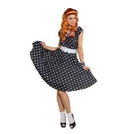 Fai un tuffo nel glamour intramontabile del rock'n'roll con il nostro elegante Costume Anni '50 Pin-Up a Pois Neri. Firmato Orlob, questo travestimento cattura l'essenza dello stile di un decennio indimenticabile, trasformandoti in un'icona di femminilità e brio. � la scelta ideale per chi desidera un look retrò che sia allo stesso tempo classico, audace e irresistibilmente chic, perfetto per una festa a tema ""Grease"", un evento di ballo swing o per un Carnevale all'insegna dell'eleganza. Perché accontentarsi di un costume qualunque quando puoi indossare un pezzo di storia della moda?