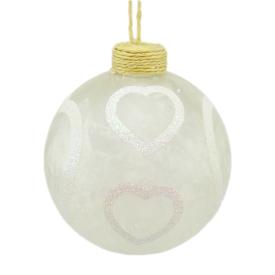 Porta un tocco di dolcezza e un'eleganza romantica sul tuo albero di Natale con questa grande pallina in vetro bianco satinato. Con un diametro di 10 cm e decorata con cuori, porta un tocco di amore e romanticismo. È la scelta ideale per chi cerca addobbi natalizi in vetro che siano un simbolo di affetto. Se vuoi un albero che parli al cuore, questa pallina è perfetta.