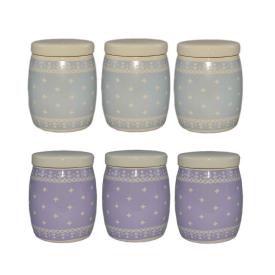 Questo set di barattoli in ceramica è stato pensato per la massima qualità. La ceramica è un materiale eccellente per la conservazione, perché isola il contenuto da luce e sbalzi di temperatura. Il coperchio, dotato di una guarnizione in silicone, garantisce una chiusura ermetica perfetta, fondamentale per preservare l'aroma del caffè e proteggere lo zucchero dall'umidità. Disponibili in due colorazioni eleganti, celeste e viola, ti permettono di scegliere la tonalitàche meglio si abbina alla tua cucina. Sono tra i barattoli e biscottiere più eleganti e funzionali.