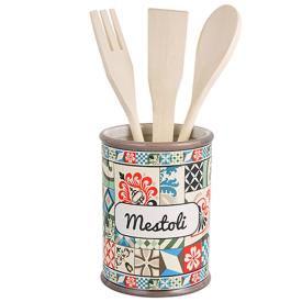 Organizza il tuo piano di lavoro con lo stile e i colori del Mediterraneo, grazie al Set Porta Mestoli Positano di Montemaggi. Questo non è un semplice contenitore, ma un accessorio cucina completo e decorativo, che ti permette di avere i tuoi utensili più importanti sempre a portata di mano. Ispirato alle maioliche tradizionali, è un pezzo di design che porta calore, ordine e un tocco di artigianalità in ogni cucina.