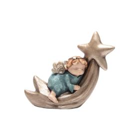 Lascia che la speranza e la magia del Natale riempiano la tua casa con questo maestoso Angelo in Resina. Alto ben 45 cm, raffigura un angelo serenamente addormentato su una scintillante stella cometa dorata, indossando un abito verde bosco. È un addobbo natalizio di grande impatto e significato, perfetto per diventare il protagonista delle tue decorazioni e un simbolo di pace per tutta la famiglia. Un pezzo unico per un Natale indimenticabile.