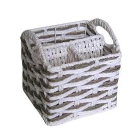 Questo portaoggetti in corda è un esempio di design versatile. I suoi tre scomparti (uno centrale più grande e due laterali) sono perfetti per organizzare posate, utensili da cucina o materiale di cancelleria. Le sue dimensioni compatte (15x15x16 cm) lo rendono ideale per ogni superficie. È uno di quegli oggetti per la casa di design che uniscono la soliditàdel metallo al calore della corda intrecciata, per un risultato di grande charme. Un modo per tenere tutto in ordine con uno stile country-chic.