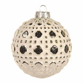 Crea un'atmosfera invernale di un'eleganza pura e sofisticata con questa pallina in vetro bianco opaco. Questa raffinata creazione Inge's Glass è pensata per chi ama uno stile pulito e minimalista, arricchito da un tocco di luce preziosa. La base in vetro bianco opaco, dalla finitura vellutata, è impreziosita da delicati decori color argento. È la scelta perfetta per un Natale moderno e di gran classe, un addobbo che evoca la bellezza dei cristalli di ghiaccio.