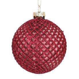 Questa magnifica pallina di Natale è realizzata in vetro e si distingue per il suo colore rosso prugna, un tono più scuro e avvolgente del classico rosso. L'intera superficie è ricoperta da un fitto strato di glitter, che le dona una luminosità eccezionale. Le sue grandi dimensioni (Ø10 cm) la rendono un addobbo per albero di Natale perfetto come pezzo forte di un allestimento moderno e di classe, da abbinare a colori come l'oro o il bronzo.