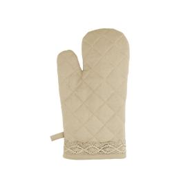 Proteggi le tue mani dal calore con un'eleganza d'altri tempi, grazie al Guanto da Forno "Amelie" della linea UnicoeRaro. Questo delizioso utensile da cucina, in una calda tonalità beige, è impreziosito da un delicato pizzo applicato su un lato, che lo rende un accessorio unico. Perché è così speciale? Perché unisce la sicurezza di un guanto di alta qualità , con esterno in 100% cotone 180gr, a uno stile romantico e classico, perfetto per un arredo casa che ama i dettagli di charme.