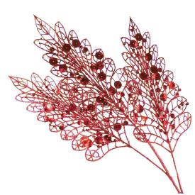 Vedi i dettagli di questo ramo decorativo rosso con paillettes. Rendi unico e scintillante il tuo Natale con le decorazioni di M2 Store!
