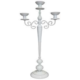 Aggiungi un tocco di eleganza maestosa alla tua casa con il nostro imponente candelabro a 3 bracci, alto ben 100 cm. In metallo verniciato bianco perlato, è il complemento d'arredo ideale per chi ama lo stile shabby chic e vuole un punto luce di grande impatto visivo. La sua struttura versatile è progettata per ospitare candele di diverse dimensioni (da 20 a 80 mm di diametro), assicurando massima praticità e sicurezza. Se cerchi un pezzo che definisca lo stile di una stanza, questo candelabro è perfetto.