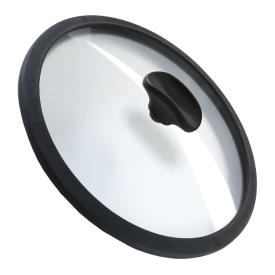 Coperchio universale multimisura in vetro trasparente con bordo in silicone nero aderente, pomello antiscottat...