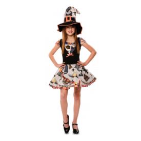 Questo costume da strega per bambina è stato creato per essere un set completo e comodo. L'abito in poliestere è leggero e facile da indossare, mentre il cappello a punta coordinato completa il look. I dettagli come le stampe a tema (es. ragnatele, stelle) e i colori classici (nero, arancione, viola) lo rendono subito riconoscibile. È una soluzione "tutto in uno" ideale da comprare online.