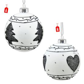 Porta un'eleganza moderna e un design grafico sul tuo albero di Natale con questa pallina in vetro bianco opaco. Con un diametro di 8 cm e decori neri, è un addobbo perfetto per chi ama lo stile minimalista e di carattere. Disponibile in due modelli assortiti (con albero o con cuore), è la scelta ideale per chi cerca decorazioni natalizie in vetro che siano un simbolo di stile. Se vuoi un albero che si distingua, questa pallina è un must.
