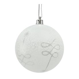 Pallina Natale Vetro cm.Ø10 di colore bianco opaco con scritta glitter oro "Merry Christmas".