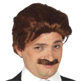 Questa parrucca corte di Guirca è realizzata in fibra sintetica di poliestere, con un taglio medio-corto e una pettinatura con riga laterale tipica del periodo. Il set include anche un paio di folti baffi finti autoadesivi, che completano il look in modo perfetto. La calotta della parrucca è elasticizzata per una vestibilitàcomoda e stabile. È un kit completo che ti permette una trasformazione immediata, ideale per parrucche per adulti e bambini (ragazzi).