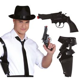 Il nostro set con fondina e pistola è pratico e di grande effetto. La fondina da spalla è realizzata in plastica rigida nera, con cinghie regolabili per essere indossata comodamente sotto una giacca. Inclusa nella confezione, una pistola giocattolo in PVC nero lunga 25 cm, pronta a essere estratta al momento giusto. È l'accessorio perfetto per completare costumi da gangster, da poliziotto, da James Bond o da qualsiasi personaggio d'azione che si rispetti.