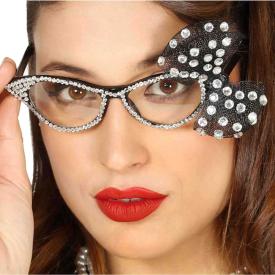 Questi occhiali per carnevale sono un concentrato di stile retrò. La montatura, realizzata in robusto PVC, ha la caratteristica forma appuntita verso l'esterno. La parte superiore è decorata con una cascata di brillantini bianchi che catturano la luce, mentre un piccolo fiocco aggiunge un tocco di civetteria. Se cerchi idee accessori originali, questi occhiali sono una scelta che non passa inosservata. Sono perfetti se vuoi comprare accessori online che siano tematicamente accurati, divertenti e di grande impatto, ideali da abbinare a gonne a ruota, giubbotti di pelle e code di cavallo.