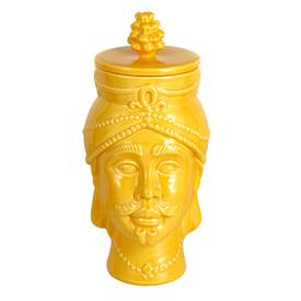 Arreda la tua cucina con un simbolo di arte e tradizione grazie al Barattolo in Porcellana a forma di Testa di Moro, versione Re. Questo magnifico barattolo di design, in una luminosa finitura gialla, trasforma un comune contenitore in un protagonista assoluto del tuo arredo. È la risposta a chi si chiede: "È possibile unire la massima funzionalitàper la conservazione degli alimenti a un oggetto dal profondo valore artistico?". È la scelta perfetta per chi non si accontenta e cerca pezzi unici.