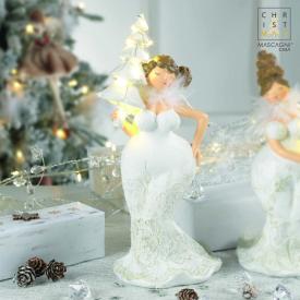 Arreda con stile e con un pizzico di ironia grazie a questa unica statua di angelo "formoso" di Mascagni. Realizzata in resina e alta 26 cm, questa figura rappresenta una simpatica donna borghese in versione angelica, con un abito bianco impreziosito da morbido marabù. Tra le mani tiene un alberello di Natale con luci LED, che aggiunge un tocco di festa. È l'idea regalo perfetta per chi ama gli oggetti di design originali e non convenzionali.