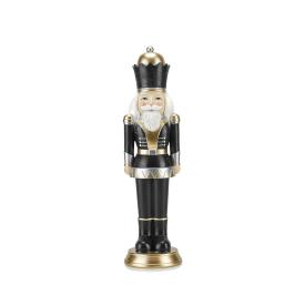 Questo schiaccianoci in resina è un vero e proprio oggetto d'arredo di lusso. La combinazione di nero e oro è un classico dell'eleganza, qui reinterpretato in chiave moderna grazie alla finitura glitter. È ideale da posizionare su una consolle, un mobile bar o come pezzo forte di un allestimento natalizio di design. Un pezzo da collezione che non passeràinosservato e che parla un linguaggio di stile e raffinatezza.
