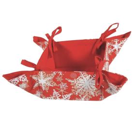 Vesti la tua tavola con i colori e i simboli della tradizione grazie a questo classico cestino portapane in tessuto di Montemaggi. Realizzato in un vivace tessuto rosso e decorato con delicati fiocchi di neve bianchi, questo portapane da 18x18 cm è l'accessorio perfetto per una mise en place calda, festosa e accogliente. Ideale per servire il pane e i grissini durante tutti i pasti delle feste.