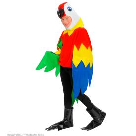 Questo costume da pappagallo per bambino è un tripudio di colori. Il set è composto da un vestito (spesso un poncho o una casacca) che riproduce il piumaggio variopinto di un ara, con strati di tessuto che simulano le ali. L'elemento che completa la magia è il cappuccio integrato, che raffigura la testa del pappagallo con tanto di becco e occhietti furbi. È la scelta ideale per chi vuole comprare costumi bambini online che siano facili da indossare, comodi e di grandissimo impatto visivo.