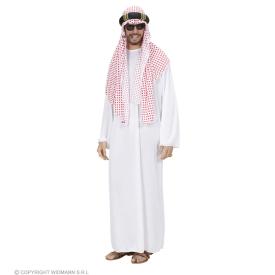 Questo costume uomo è stato disegnato per essere completo e realistico. Il set include una lunga e comoda tunica bianca (thawb) e l'inconfondibile copricapo arabo (keffiyeh) tenuto da una fascia (agal). È la scelta ideale per chi vuole comprare costumi adulti online e ricevere un kit pronto all'uso, facile da indossare e di grande effetto. Completa il look con un paio di occhiali da sole e una barba finta per diventare uno dei personaggi più riconoscibili dei costumi adulti per carnevale.