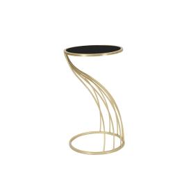 Questo tavolino di design, perfetto anche come portatelefono, è un capolavoro di equilibrio. La sua struttura è interamente realizzata in ferro, lavorato per creare una base geometrica che si apre verso l'alto, in una lussuosa finitura dorata. Il piano rotondo è in vetro temperato con finitura a specchio, un dettaglio incredibilmente chic che riflette la luce, donando luminositàe un senso di maggiore ampiezza alla stanza, in un elegante colore nero a contrasto.