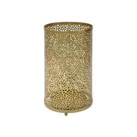 Questo portaombrelli di design si caratterizza per la sua estetica pulita e moderna. La struttura cilindrica, realizzata in robusto ferro, è interamente traforata con un motivo a cerchi di diverse dimensioni. Questa lavorazione "a pois" non solo crea un affascinante gioco di pieni e vuoti che rende l'oggetto leggero e dinamico, ma favorisce anche un'eccellente ventilazione per gli ombrelli. La finitura in una brillante tonalitàoro lo trasforma in un accessorio glamour e sofisticato, capace di aggiungere un punto luce prezioso all'ingresso di casa o di un ufficio.