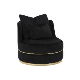 La poltrona 'Paris Space' è puro lusso. La sua ampia e profonda seduta a pozzetto, con un diametro di ben 84 cm, è rivestita in un sontuoso tessuto effetto velluto nero. A farla brillare è la base, realizzata in metallo con finitura dorata, che permette alla poltrona di ruotare di 360 gradi. L'effetto è quello di una poltrona da gran galà, un pezzo che non passa inosservato. È una delle poltrone più audaci e lussuose del nostro catalogo di mobili per la casa online.