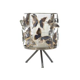 Il portacandela Farfalle è una vera e propria scultura. È realizzato interamente in ferro, con una finitura dorata che gli conferisce un aspetto prezioso. Il design rappresenta un volo di farfalle che sorreggono un supporto in vetro per la candela. Questa lanterna da tavolo è pensata per creare un'atmosfera calda e lussuosa, con la luce della candela che si riflette sulle superfici dorate, creando un effetto scintillante.