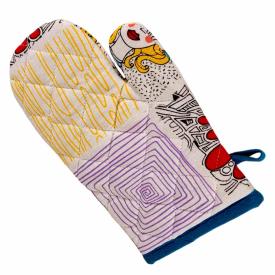 Questo guanto da cucina è realizzato con un esterno in 100% cotone per una presa comoda e un interno in poliestere per un ottimo isolamento termico. La sua lunghezza di 27 cm protegge efficacemente la mano e il polso. La sua fantasia unica lo rende un utensile decorativo da cucina da esporre con orgoglio. È un accessorio pratico da arredo che porta una ventata di allegria e modernità . Per una cucina e accessori tavola eleganti e pieni di carattere, questo guanto è un dettaglio irrinunciabile.