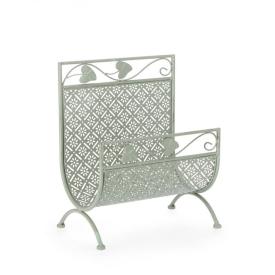 Il portariviste Harriet è un pezzo di grande charme. È realizzato interamente in ferro, con una finitura verniciata in un bellissimo color verde salvia, con un effetto anticato che gli conferisce un aspetto vissuto. Il design è dotato di due ampi scomparti per le riviste e di un comodo manico in legno di mango, che ne facilita lo spostamento e aggiunge un piacevole contrasto materico. Questo portariviste è perfetto da posizionare accanto a una poltrona o a un divano.