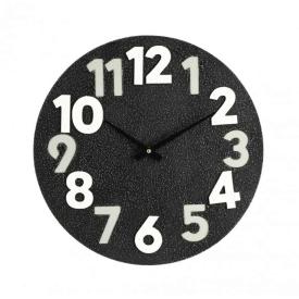 Orologio da parete in legno MDF, con grandi numeri. Dimensione cm.Ø34x3,8, alimentazione con 1 batterie AA ...