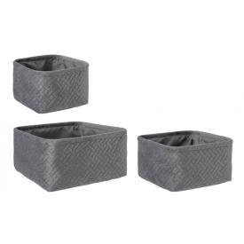 Questo set di cesti è composto da tre contenitori quadrati di dimensioni a scalare, ideali per essere inseriti in mobili e scaffali. Realizzati in fibra di cotone intrecciata in una versatile ed elegante tonalitàdi grigio, si abbinano facilmente a qualsiasi arredo. La forma quadrata ottimizza lo spazio e i comodi manici laterali ne facilitano la presa. Sono i contenitori in tessuto perfetti per riporre vestiti, accessori, libri, documenti o giocattoli, trasformando il disordine in un dettaglio di stile.