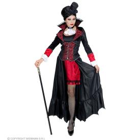 Questo costume donna è un capolavoro di stile gotico. L'abito lungo, solitamente nero e rosso, è disegnato per esaltare la figura, con dettagli come maniche ampie, inserti in pizzo e un colletto alto e rigido che incornicia il volto. È la scelta d'eccellenza per chi vuole comprare costumi adulti online e assicurarsi un look regale e d'impatto. Aggiungendo un trucco pallido e dei denti aguzzi, il tuo costume da vampira sarà assolutamente perfetto e indimenticabile.