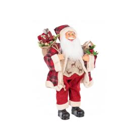 Questo Babbo Natale da terra non passa inosservato. La sua struttura autoportante (stand) lo rende facile da posizionare ovunque: accanto all'albero, vicino al camino, o all'ingresso per un benvenuto caloroso. L'abito in tessuto scozzese, la folta barba bianca e i dettagli curati ne fanno un pupazzo natalizio di alta qualità. È una di quelle decorazioni per la casa che da sola riesce a riempire una stanza di gioia e spirito festivo.