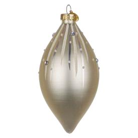Vesti il tuo albero con un'eleganza scultorea grazie a questo imponente ornamento a goccia firmato Bizzotto. Alto ben 13 cm, questo pendaglio in vetro si impone per la sua forma affusolata e la sua luminosa finitura bianco perla. È una delle decorazioni natalizie sagomate più d'impatto, pensata per chi cerca decorazioni per albero originali che diventino un punto focale di pura eleganza e modernità .