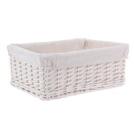Questo cesto portaoggetti è un campione di capienza. Le sue dimensioni generose (40x30x16 cm) sono perfette per gli oggetti più voluminosi. La fodera in tessuto è removibile per una facile pulizia e protegge il contenuto. La struttura in vimini bianco è robusta e porta un tocco di luminositàe freschezza in ogni ambiente. È una di quelle soluzioni organizzative d'arredo che sono belle da vedere e incredibilmente utili, un vero alleato per una casa sempre ordinata e accogliente.