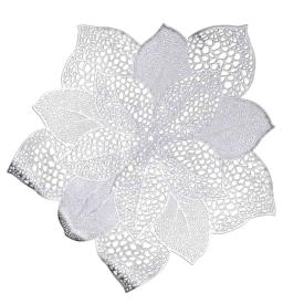 Apparecchia una tavola delle feste che sia un'opera d'arte con il Sottopiatto a Forma di Fiore in PVC Argento. Questo scenografico e moderno accessorio per la tavola di Vacchetti è la scelta ideale per chi desidera una mise en place d'impatto e originale. Con il suo design floreale e la sua finitura brillante, risponde alla domanda: come posso creare una tavola natalizia che stupisca i miei ospiti? È una tovaglietta di design che trasforma ogni posto a tavola in una decorazione.