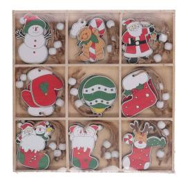 Questo ricco set include ben 27 palline di Natale da 6 cm di diametro, realizzate in legno e decorate con diversi soggetti natalizi assortiti. La varietàdi design all'interno del set permette di creare un albero dinamico e interessante, pur mantenendo uno stile coerente. Le sfere natalizie in legno sono leggere, infrangibili e portano un'autenticitàe un calore unici. Sono perfette per un allestimento che celebra la natura e la semplicità.