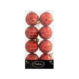 Aggiungi un tocco di creatività e di festa al tuo albero di Natale con questo vivace set di 8 palline rosse decorate. Questa proposta di Cometa Collections è pensata per chi ama la tradizione del colore rosso ma cerca un dettaglio originale che renda la decorazione più interessante e personale. È la soluzione ideale per chi desidera degli addobbi natalizi allegri e curati, che uniscano il colore della festa a fantasie uniche.