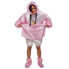 Questo costume di Carnival Toys è un set completo che include un pagliaccetto rosa, un grande bavaglino e una cuffietta. È realizzato in tessuto di poliestere, leggero e comodo. Se vuoi comprare costumi adulti online, un travestimento come questo è una garanzia di risate. La vestibilità ampia e comica lo rende adatto a tutte le taglie. (Nota: il prodotto è un set di più pezzi, non un singolo "Vestito").