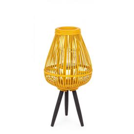 La lanterna decorativa Ninette è un pezzo di design che non passa inosservato. La base a treppiede è in legno, mentre il paralume è realizzato con un intreccio di listelli di bambù. La combinazione cromatica tra il caldo color ocra e l'elegante nero crea un look ricercato e di grande personalità. All'interno, il portacandela in vetro garantisce la sicurezza della fiamma. A differenza delle classiche lanterne da terra, questo modello è un pezzo scultoreo, ideale per chi cerca portacandele di design online che siano unici e che portino calore e carattere all'ambiente.