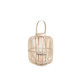 La lanterna decorativa Merille in versione grande è un oggetto che non passa inosservato. La solida struttura in legno di pino si abbina magnificamente al corpo cilindrico rivestito in listelli di bambù, che creano un suggestivo filtro per la luce. Il manico in corda non solo è funzionale, ma completa l'estetica naturale del pezzo. All'interno, il cilindro in vetro garantisce la sicurezza della fiamma. A differenza delle solite lanterne da terra, il modello Merille è un pezzo di artigianato che arreda con carattere, ideale per chi cerca portacandele di design online che facciano la differenza.